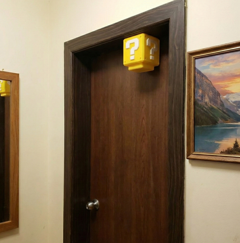 Decidí pegarla en la parte superior del marco de mi puerta y se ha convertido en la señal oficial de la casa para saber si estoy ocupado. Me parece una forma súper divertida y peculiar de avisar. Es genial porque en lugar de colgar un cartel aburrido, tengo que darle un toque al entrar como si fuera Mario para activar mi modo ocupado. A mis compañeros de piso les ha encantado la idea.