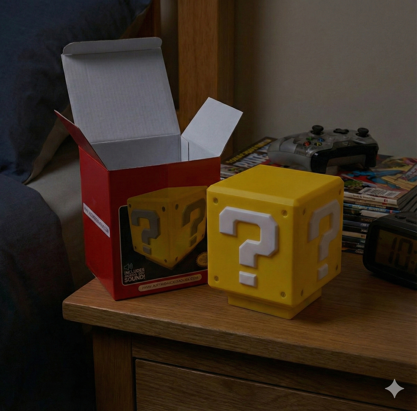 La pieza que le faltaba a mi cueva. Suena exactamente igual que cuando coges una moneda en el juego de 8-bits. La iluminación es perfecta para tenerla de fondo mientras juego.